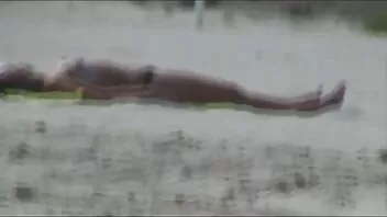 तातो केटी अर्को ढोकाको किनारमा किनमेल महिलाहरूको भिडियोमा उनको बिकिनी लुकाउछिन्